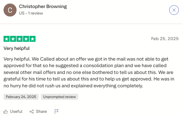 Christopher Browning’s experience reveals the pattern: “We called about an offer we got in the mail, was not able to get approved for that so he suggested a consolidation plan, and we have called several other mail offers, and no one else bothered to help us.”