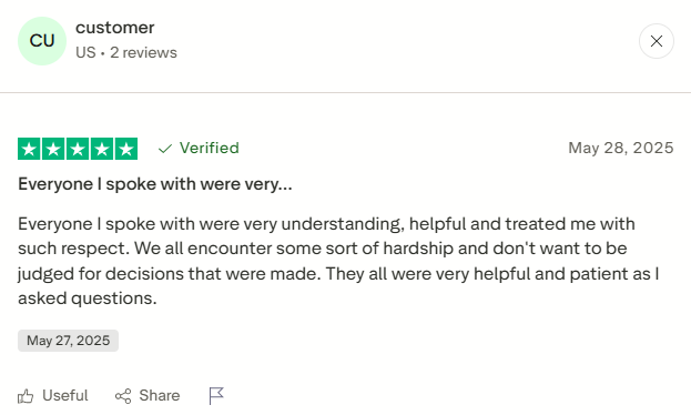 Another customer said: “Everyone I spoke with were very understanding, helpful and treated me with such respect. We all encounter some sort of hardship and don’t want to be judged for decisions that were made.”
